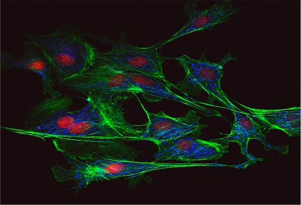 Confocal Microscope Image of Fixed Mouse Embryonic Fibroblast (MEF) Cells